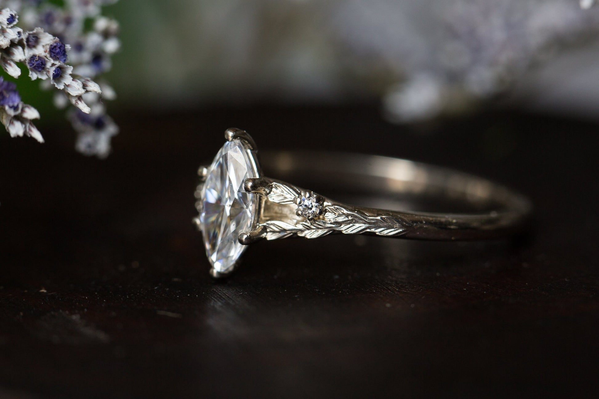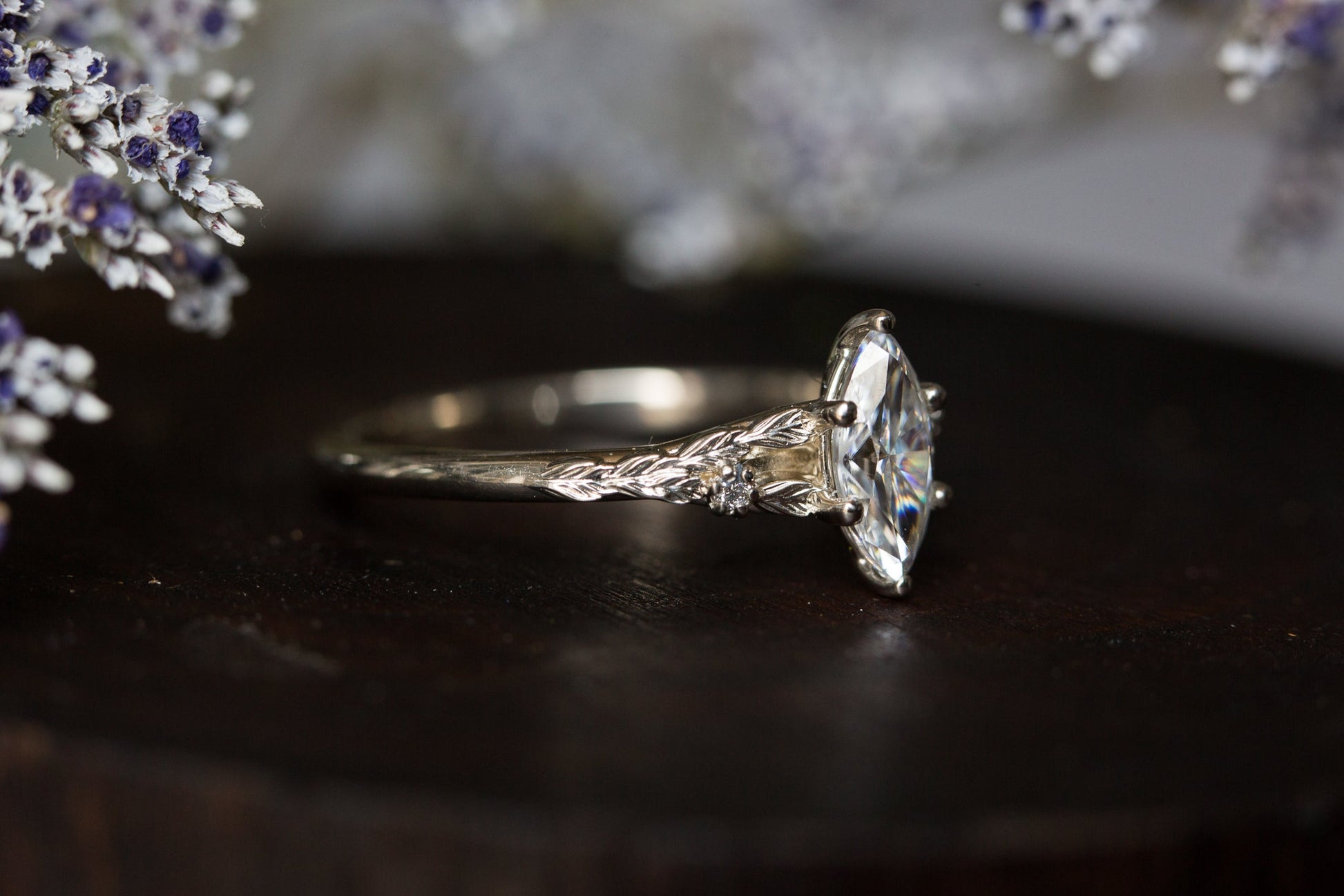 [Oramore Jewelry]Marquise moissanite leaf cathedral engagement ring