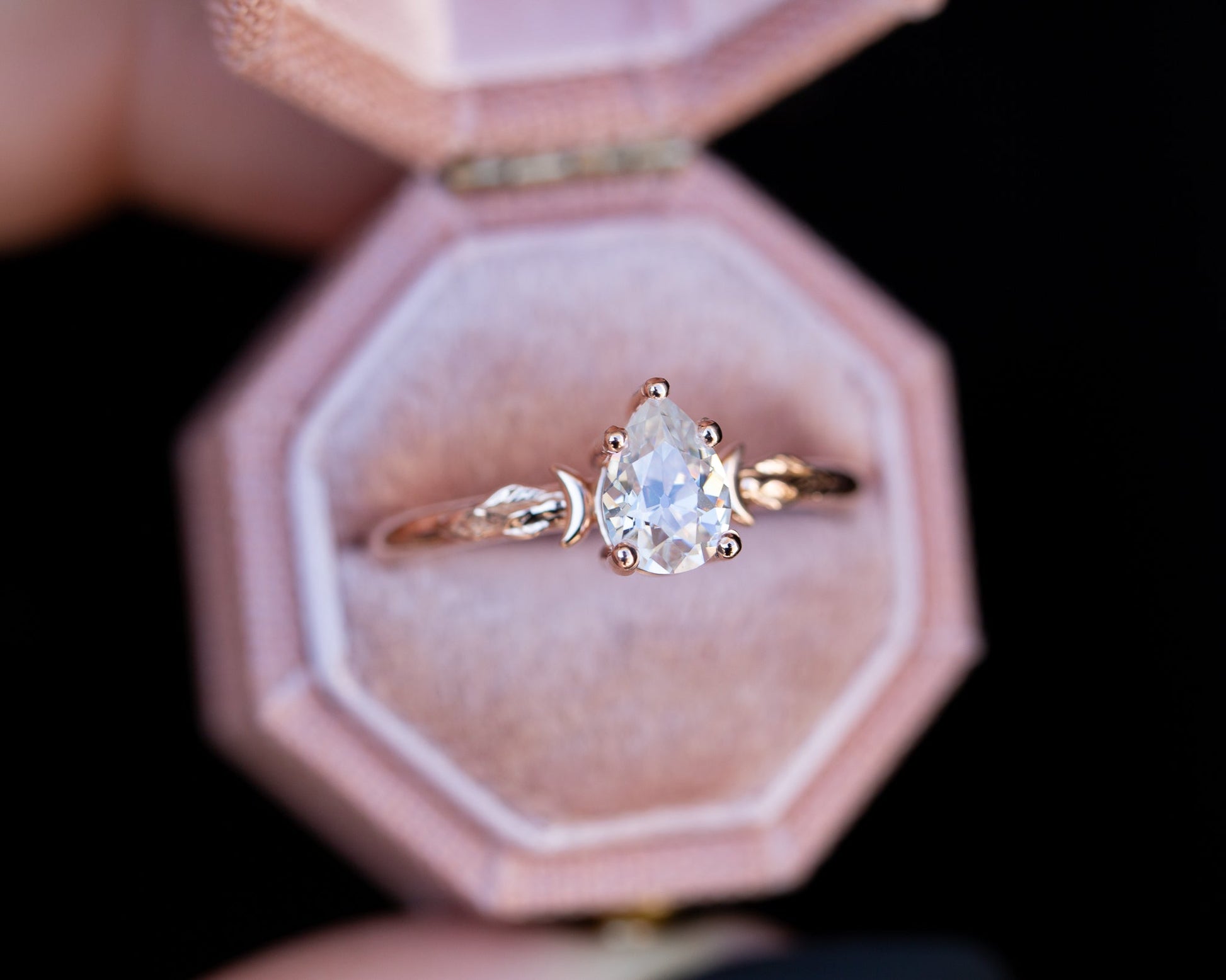 [Oramore Jewelry]Pear moissanite crescent moon leaf ring