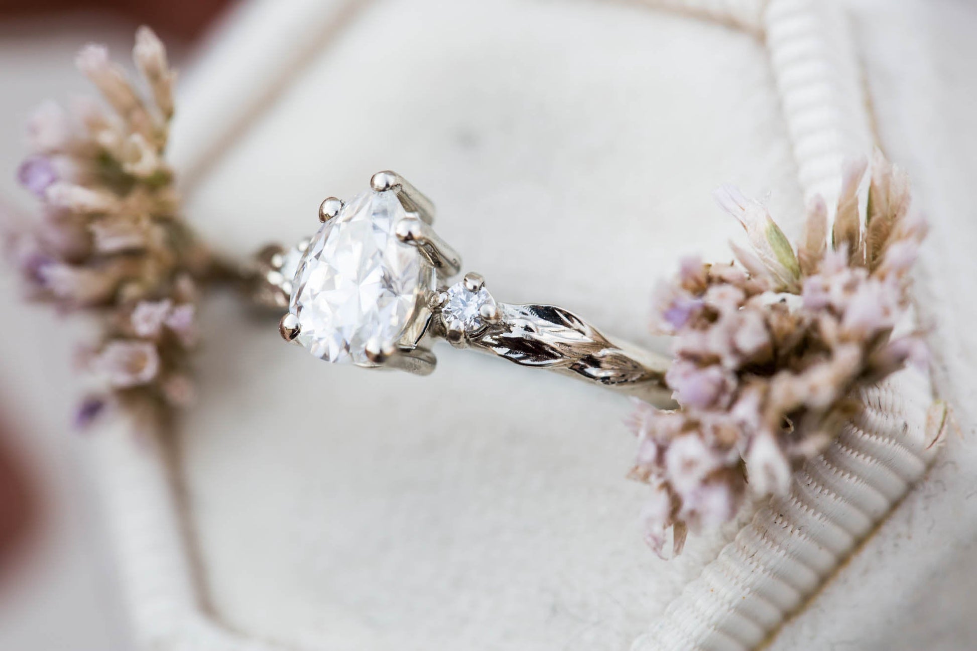 [Oramore Jewelry]Pear moissanite three stone leaf ring